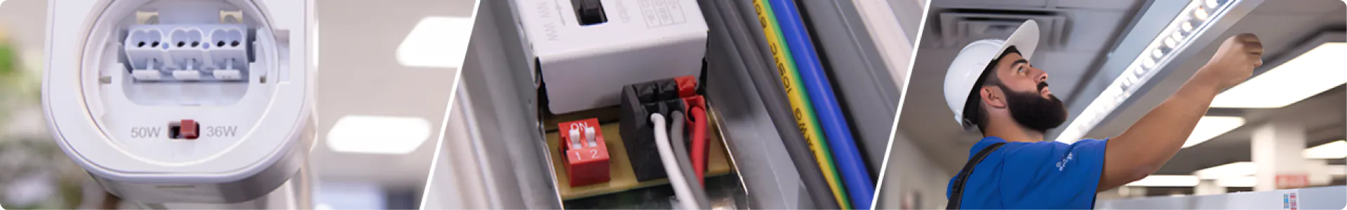 Met CCT (schakelaar; vaste Kelvin-waarden) en afstembaar wit (draaiknop; alle Kelvin-waarden tussen ...K en ...K) stem je het licht ook af op de specifieke kenmerken van een omgeving. Het enige verschil is dat het flexibele element de lichtkleur is in plaats van de lichtopbrengst. Ontdek meer in deze blog: Wat zijn afstembare witte en CCT LED's?