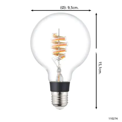 Beschrijving Eglo Connect.Z Smart LED Globe E27 Filament Helder 4.9W 400lm - 830 Warm Wit + RGB | Dimbaar - Vervangt 40W