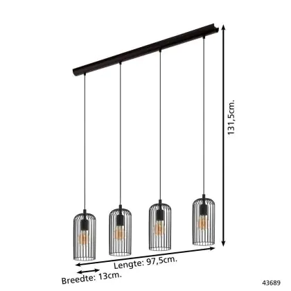 Beschrijving Eglo Pendelarmatuur Roccamena 1 Staal Zwart | Geschikt voor 4x E27