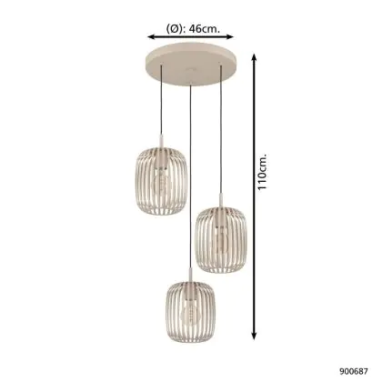Beschrijving Eglo Pendelarmatuur Romazzina Staal Zanderig | Geschikt voor 3x E27