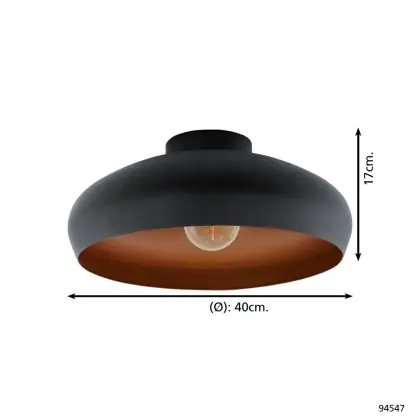 Beschrijving Eglo Plafondlamp Mogano Zwart, Koper | Geschikt voor E27