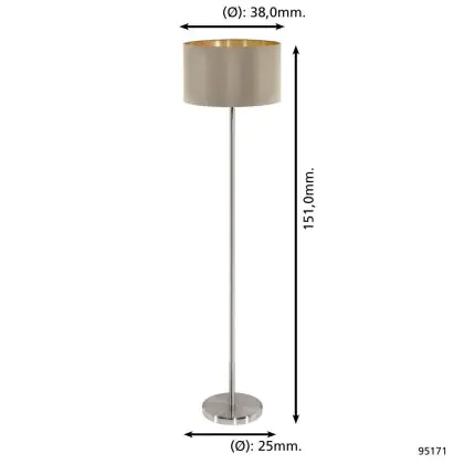 Beschrijving Eglo Vloerlamp Maserlo Staal Satijn Nikkel | Geschikt voor E27