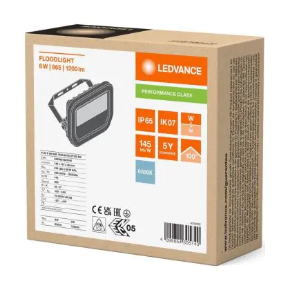 Beschrijving Ledvance LED Breedstraler Aluminium Zwart 8W 1200lm 100D - 865 Daglicht | IP66 - Symmetrisch