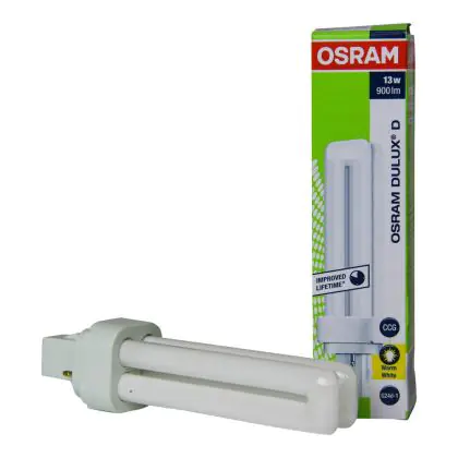De Dulux D serie van A-merk Osram staat bekend om de betaalbaarheid, natuurlijke kleurweergave en uitstekende lichtopbrengst. Met een wattage van 13W verbruik je met deze Osram Dulux D spaarlamp ook minder vergeleken met conventionele gloeilampen!
