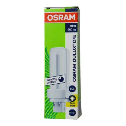 De Osram Dulux D/E is enkel te gebruiken in combinatie met een elektronisch voorschakelapparaat. De lichtbron is dimbaar. U herkent de Osram Dulux D/E 10W 830 eenvoudig aan de G24q-1 lampvoet met 4 pinnen. De lichtbron is 103 cm lang. Op het moment dat de afmeting van uw huidige lamp sterk afwijkt van 103 cm heeft u een ander wattage in gebruik.