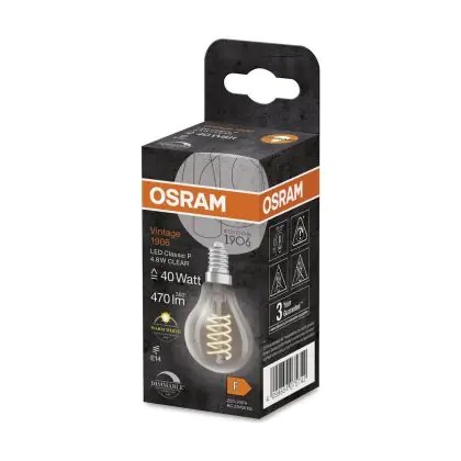 Beschrijving Osram Vintage 1906 LED Classic Slim E14 Peer Filament Helder 4.8W 470lm - 827 Zeer Warm Wit | Dimbaar - Vervangt 40W