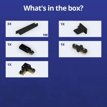 Beschrijving Rail Set 1-Fase L 1 x 2 Meter Zwart | incl. Eindkap, Voedingsconnector en L -Verbindingsstuk