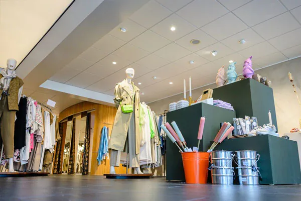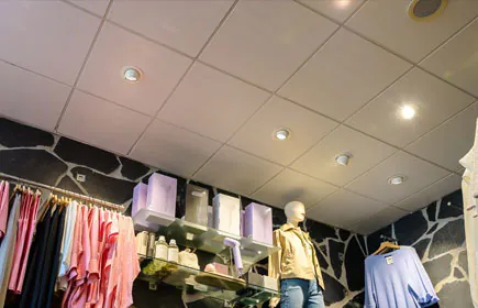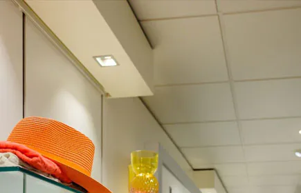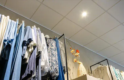 • In de winkel zijn uitsluitend wit gekleurde armaturen gebruikt, wat zorgt voor een rustig plafond. De bezoeker heeft hierdoor direct oog voor het assortiment (geen afleidingen).