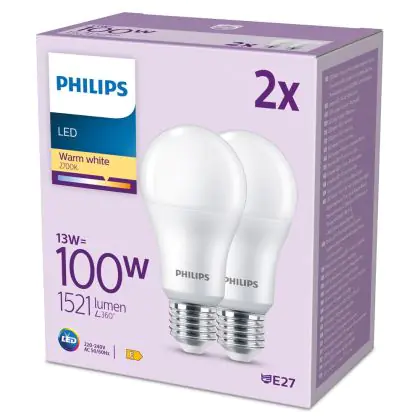 Beschrijving Voordeelpak 2x Philips Lamp LED E27 Peer Mat 13W 1521lm - 827 Zeer Warm Wit